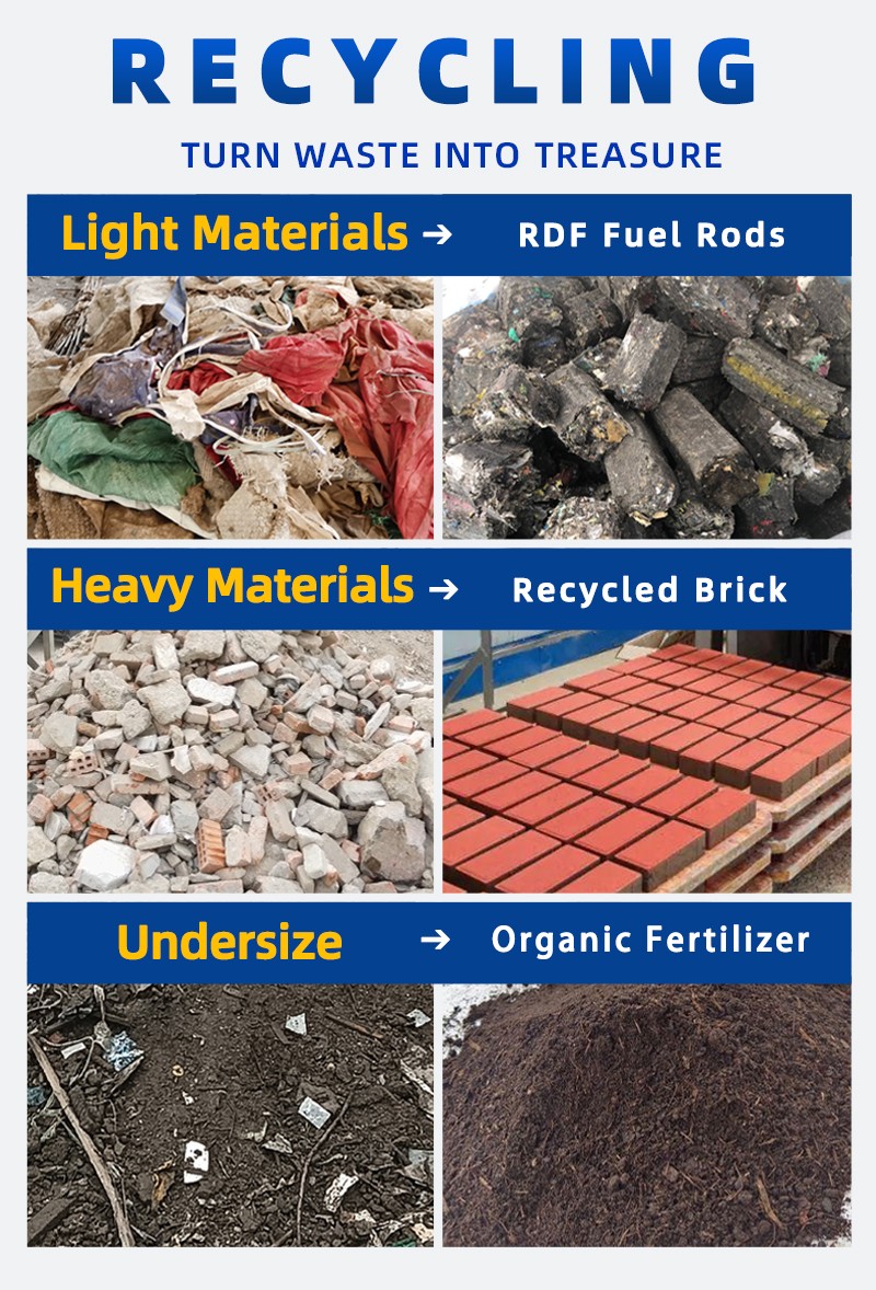 Applicable Materials:construction waste、aged waste、landfilled waste、mixed municipal waste、bulky waste sorting